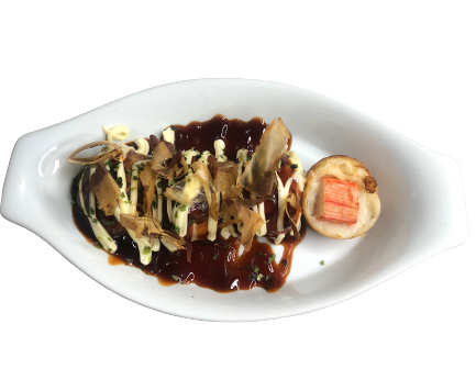 Comes with Crab meat, Special Takoyaki Sauce, Japanese Mayo, Aonori powder and selection of Bonito Flakes or Floss